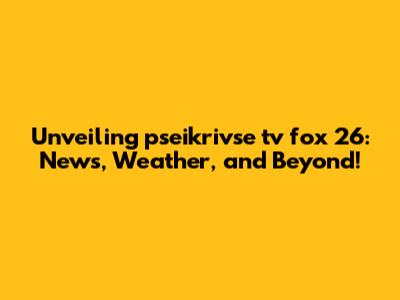Unveiling Pseikrivse Tv Fox 26: News, Weather, And Beyond!